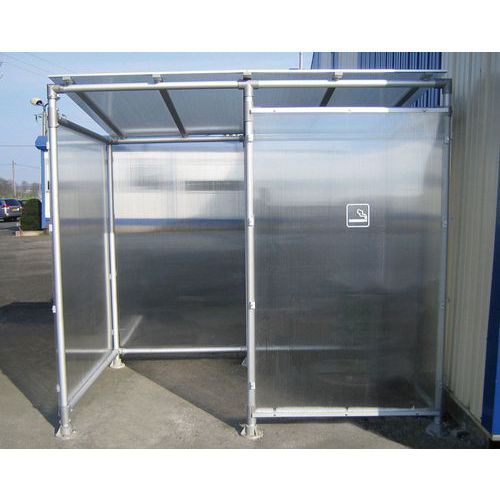 Il offre un espace couvert qui protège les fumeurs de la pluie, du vent et des UV grâce à sa toiture et ses bardages en polycarbonate alvéolaire (épaisseur 10 mm, traité anti-UV).