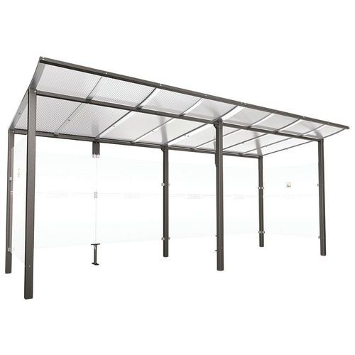 - Abri fumeurs Modulo avec poteaux carrés tube acier 70 x 70 mm.