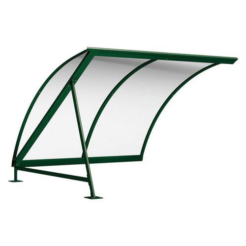 - Abri cycle demi lune complémentaire avec poteaux et traverse en tube acier fixés par vis sur inserts.