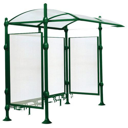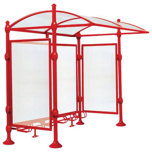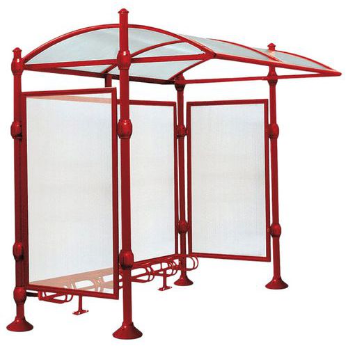 - Abri vélos Province initial avec poteaux en tube aluminium de Ø 76 mm, pommeau Agora.
