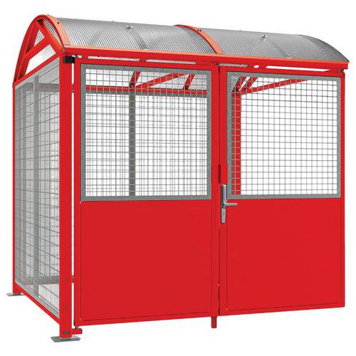 - Sécurisation de la double porte : partie haute en grillage carré fil de Ø 5 mm, partie basse en tôle épaisseur 1,5 mm.