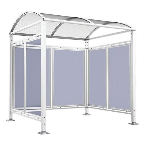 - Bardages fond et latéraux avec cadre profilé aluminium et vitrage en polycarbonate alvéolaire épaisseur 10 mm, anti-UV.
