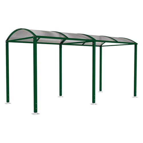 - Abri vélos Voûte M initial et complémentaire avec poteaux carrés en tube acier 80 x 80 mm.