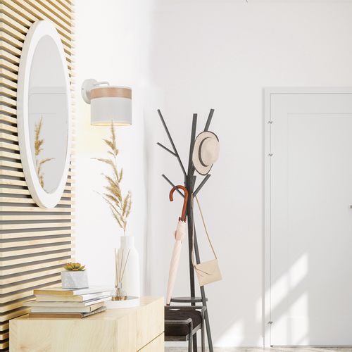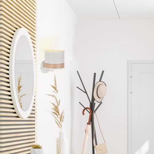 Applique base ronde en métal . Abat-jour cylindre en coton Corep
