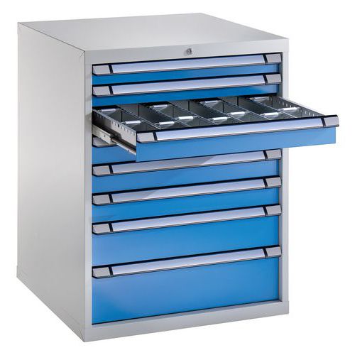 - Tiroirs aménageables avec des subdivisions permettant de créer des compartiments, vendues en option (excepté pour les modèles 6 et 8 tiroirs).