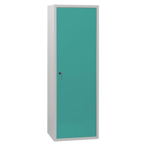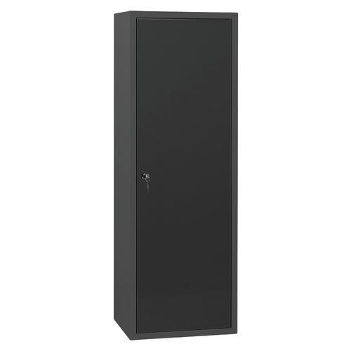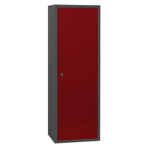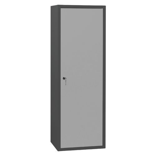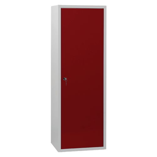 Construction monobloc soudée, tôles laminées à froid 7 et 9/10ème. Aménagements intérieur tôles acier galvanisé à chaud encliquetées non peintes. Kit suspendu: 1 cloison médiane suspendue:- 1 côté droit rangement 3 tablettes fixes.- 1 côté gauche penderie.Porte: ouverture sur pivots invisibles pour une meilleure esthétique.1 porte à 1 battant.Aérations: par poinçonnage à l arrière de l armoire.