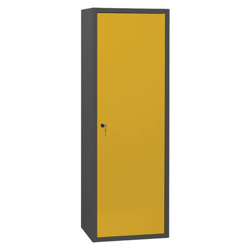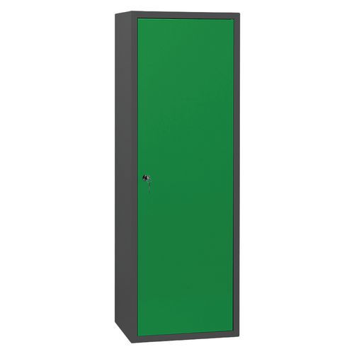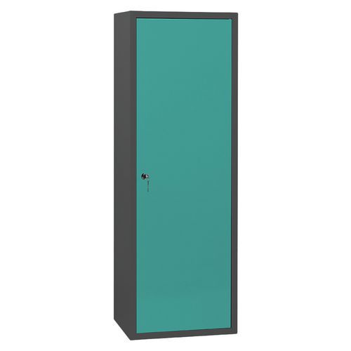 Construction monobloc soudée, tôles laminées à froid 7 et 9/10ème. Aménagements intérieur tôles acier galvanisé à chaud encliquetées non peintes. Kit suspendu: 1 cloison médiane suspendue:- 1 côté droit rangement 3 tablettes fixes.- 1 côté gauche penderie.Porte: ouverture sur pivots invisibles pour une meilleure esthétique.1 porte à 1 battant.Aérations: par poinçonnage à l arrière de l armoire. Garantie client : 7 ans