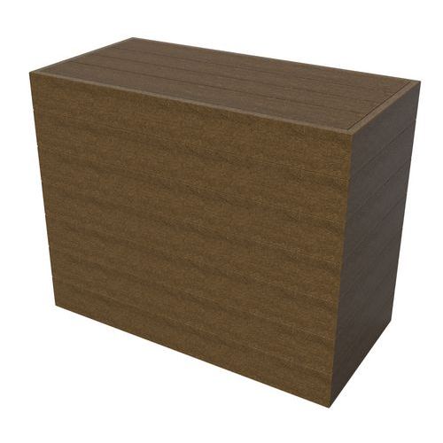 Assises modulables Cube 120 x 60 cm sans entretien. Imputrescibles. Résistent à l'eau et à l'humidité. Anti mousse, anti UV et anti tags. Plusieurs configurations possibles. Assise composée de planches d'épaisseur 4 cm. Pied composé de planches languette et rainure d'épaisseur 2,8 cm montées sur des cornières acier. 3 hauteurs : 41 cm, 69 cm et 97 cm. Fixation d'un module par 4 équerres et goujons d'ancrage (en option). Livrée montée. Exsite en dimensions 60 x 60 cm et en 5 packs. Possibilité de panachage latte et pieds sur demande : vert-marron, noir-gris, vert-noir, sable-marron, marron-noir, ou jaune, rouge, bleu