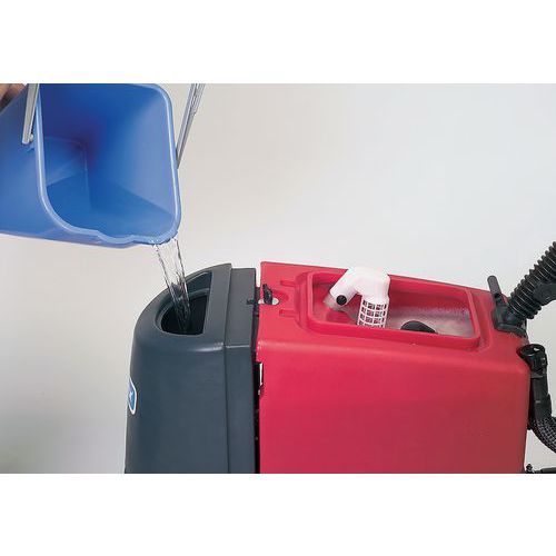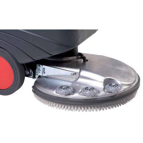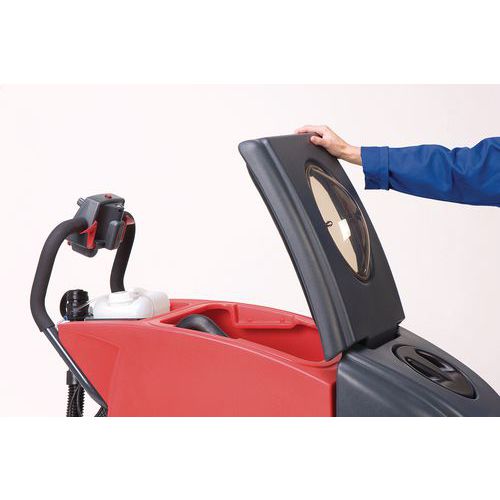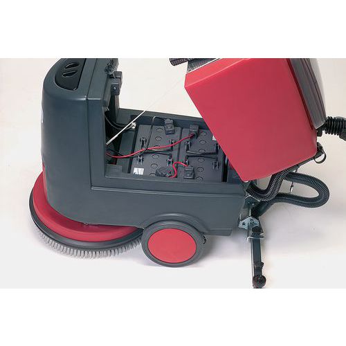 Autolaveuse tractée à batteries, économe en eau et détergent.