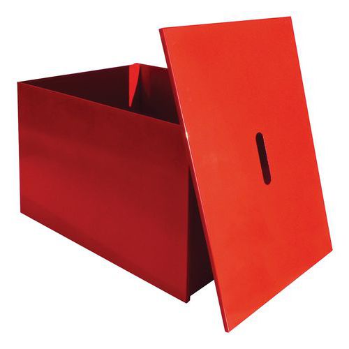 | Intitulé du produit | Bac à sable métal avec couvercle, Coloris: Rouge, Capacité: 100 L, Longueur hors tout: 575 mm |