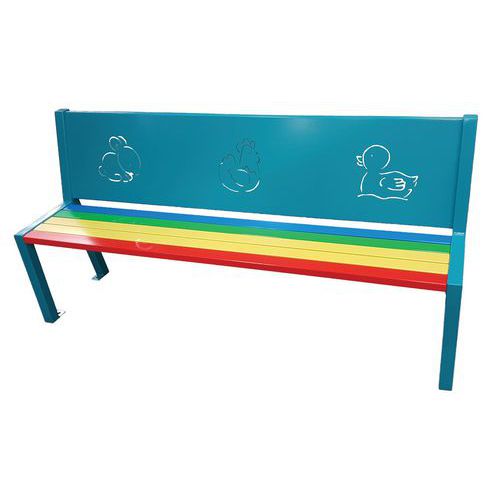 Banc enfant pour école papayer, Matériau: Acier, Type de mobilier urbain: Banc, Assise hauteur: 39 cm