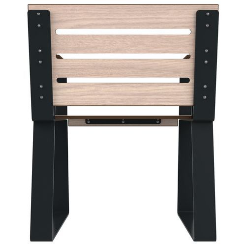 - Assise et dossier compact HPL ajouré, structure en acier traité anticorrosion et poudré anti-UV.