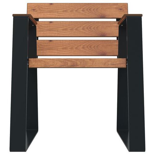 - Assise et dossier compact HPL finition lames, structure en acier traité anticorrosion et poudré anti-UV.