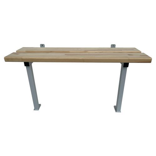 - Banc vestiaire avec équerre d'assise en acier soudée sur platine de fixation murale et au sol