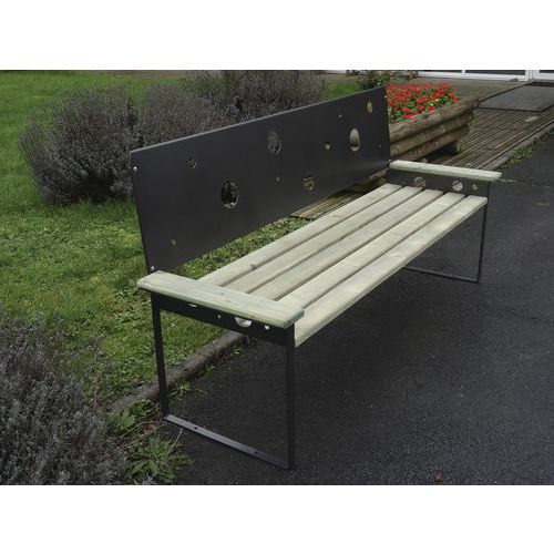 Banc épuré, bi matière : Acier / Bois, Acier / HPL ou Acier / Alu.