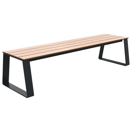 - Assise compact HPL effet lames, structure acier traité anticorrosion et poudré anti-UV.