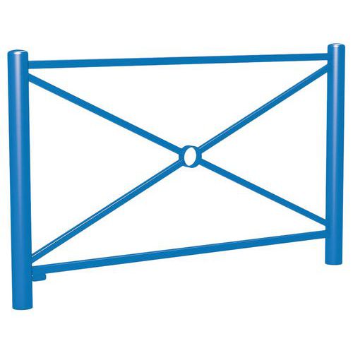 - Barrière Carrefour avec cadre simple croix, tubes acier ø 76 mm, équipé d’un bouchon bombé soudé.