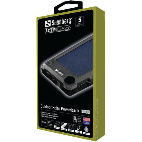 | Intitulé du produit | Batterie externe coque IP66 solaire 10000, Capacité (électrique): 10000 mAh, Coloris: Noir, Largeur: 7.5 cm |
