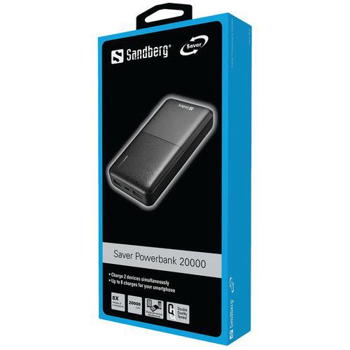 La Sandberg Saver Powerbank est une batterie portable qui se charge à l'aide d'un port USB et qui peut alors transférer l'énergie vers un téléphone portable ou un autre appareil mobile.