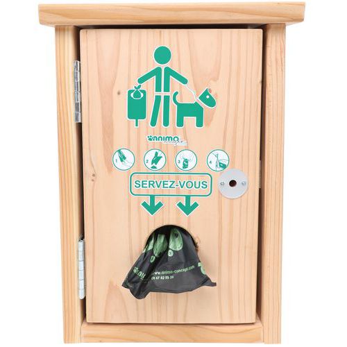 Borne Toutoubois avec distributeur sachet liasse bois, Ouverture: Frontale, Matériau: Bois, Coloris: Pin Borne Toutoubois avec distributeur sachet liasse bois, Ouverture: Frontale, Matériau: Bois, Coloris: Pin