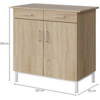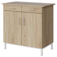 Buffet Malibu 2 portes 2 tiroirs, Coloris: Chêne, Piétement coloris: Blanc, Plateau matériau: Aggloméré Buffet Malibu 2 portes 2 tiroirs, Coloris: Chêne, Piétement coloris: Blanc, Plateau matériau: Aggloméré