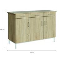 Buffet Malibu 3 portes 3 tiroirs, Coloris: Chêne, Piétement coloris: Blanc, Plateau matériau: Aggloméré Buffet Malibu 3 portes 3 tiroirs, Coloris: Chêne, Piétement coloris: Blanc, Plateau matériau: Aggloméré