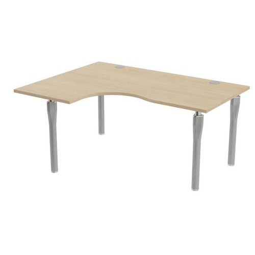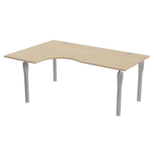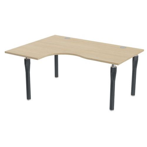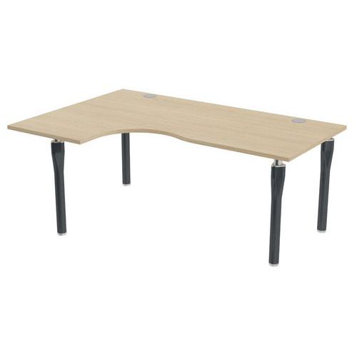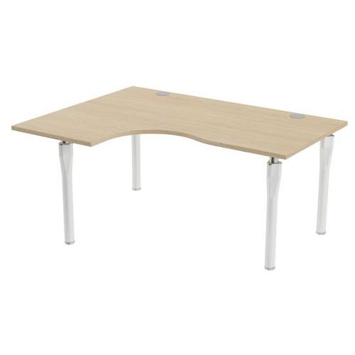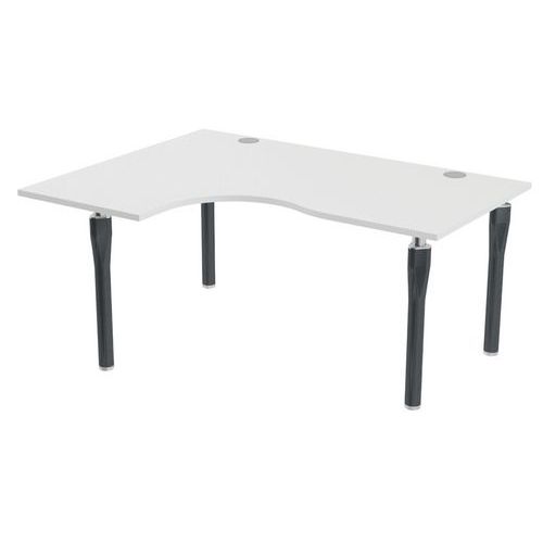 Plateau haute densité finition mélaminé classé au feu M3. Chant plaqué épaisseur 2 mm. 2 obturateurs pour le passage des câbles Ø 80 mm. 2 raidisseurs métalliques sous plateau à partir de 140 cm de large. Pieds en tube acier Ø 60 mm équipés de vérins de réglage. Proposée dans de nombreux format de plateau
