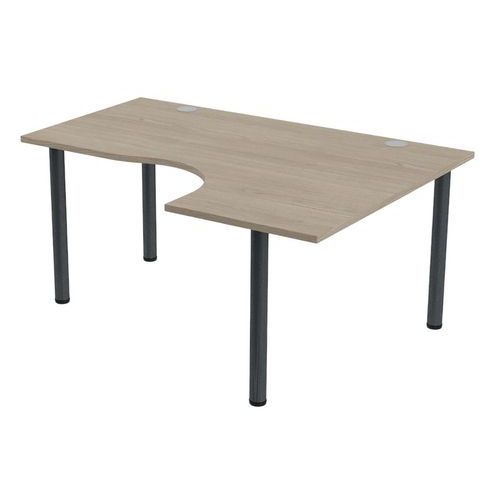 Plateau haute densité finition mélaminé classé au feu M3. Chant plaqué épaisseur 2 mm. 2 obturateurs pour le passage des câbles Ø 80 mm. 2 raidisseurs métalliques sous plateau à partir de 140 cm de large. Pieds en tube acier Ø 60 mm équipés de vérins de réglage. Cette gamme existe également en version sur roulettes.