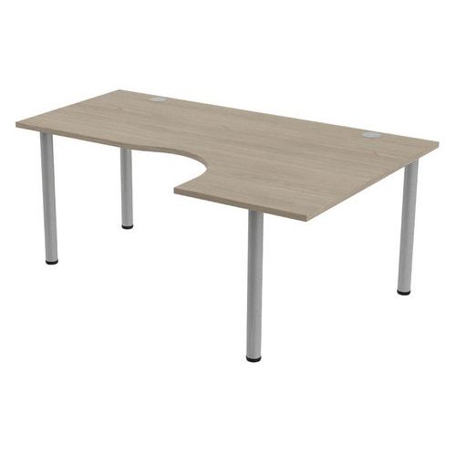 Plateau haute densité finition mélaminé classé au feu M3. Chant plaqué épaisseur 2 mm. 2 obturateurs pour le passage des câbles Ø 80 mm. 2 raidisseurs métalliques sous plateau à partir de 140 cm de large. Pieds en tube acier Ø 60 mm équipés de vérins de réglage. Cette gamme existe également en version sur roulettes.