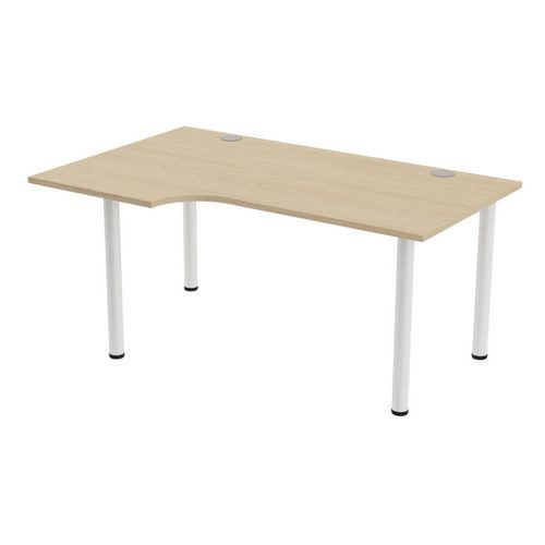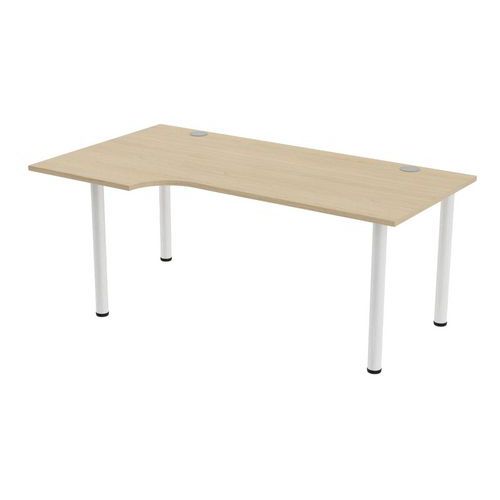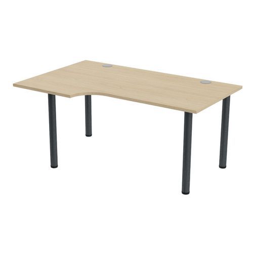 Plateau haute densité finition mélaminé classé au feu M3. Chant plaqué épaisseur 2 mm. 2 obturateurs pour le passage des câbles Ø 80 mm. 2 raidisseurs métalliques sous plateau à partir de 140 cm de large. Pieds en tube acier Ø 60 mm équipés de vérins de réglage. Cette gamme existe également en version sur roulettes.