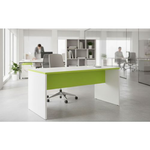Bureau droit pour aménager votre espace de travail. Plateau surfacé mélaminé d'une épaisseur de 22 mm en panneau de particules Voile de fond épaisseur 16 mm. Chants ABS épaisseur 22 mm.
