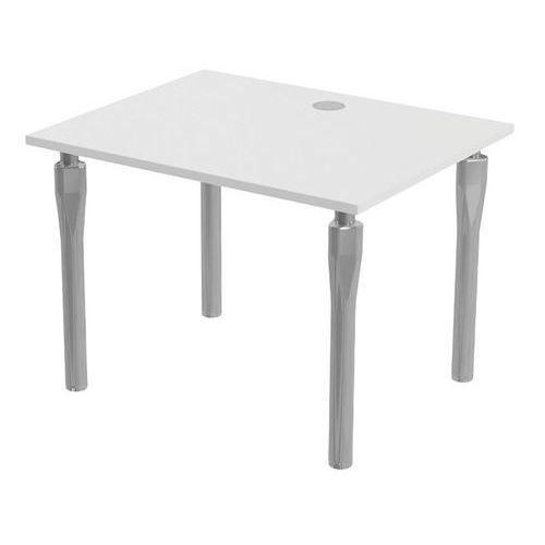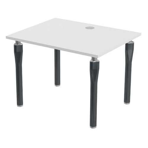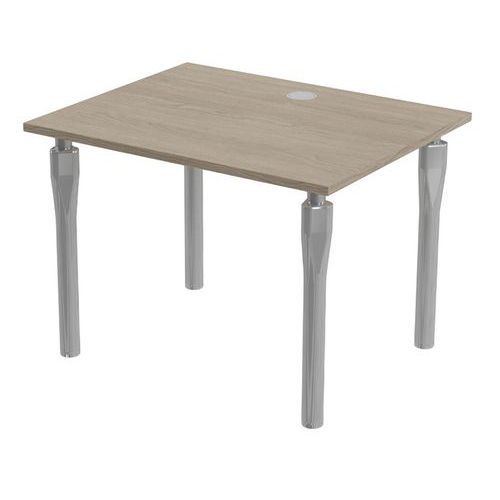 Plateau haute densité finition mélaminé classé au feu M3. Chant plaqué épaisseur 2 mm. 2 obturateurs pour le passage des câbles Ø 80 mm. 2 raidisseurs métalliques sous plateau à partir de 140 cm de large. Pieds en tube acier Ø 60 mm équipés de vérins de réglage. Proposée dans de nombreux format de plateau
