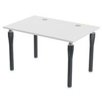 Plateau haute densité finition mélaminé classé au feu M3. Chant plaqué épaisseur 2 mm. 2 obturateurs pour le passage des câbles Ø 80 mm. 2 raidisseurs métalliques sous plateau à partir de 140 cm de large. Pieds en tube acier Ø 60 mm équipés de vérins de réglage. Proposée dans de nombreux format de plateau
