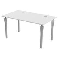 Plateau haute densité finition mélaminé classé au feu M3. Chant plaqué épaisseur 2 mm. 2 obturateurs pour le passage des câbles Ø 80 mm. 2 raidisseurs métalliques sous plateau à partir de 140 cm de large. Pieds en tube acier Ø 60 mm équipés de vérins de réglage. Proposée dans de nombreux format de plateau