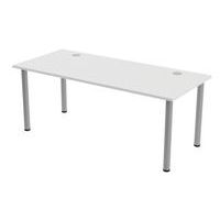 Plateau haute densité finition mélaminé classé au feu M3.  Chant plaqué épaisseur 2 mm.  2 obturateurs pour le passage des câbles Ø 80 mm.  2 raidisseurs métalliques sous plateau à partir de 140 cm de large.  Pieds en tube acier Ø 60 mm équipés de vérins de réglage.   Cette gamme existe également en version sur roulettes.