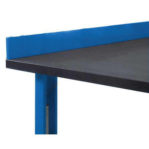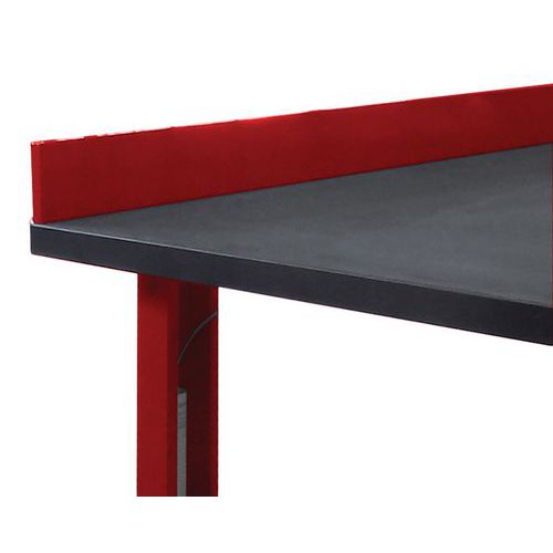 - Butée anti-chute toute largeur vissée sur le bord arrière du plateau, en tôle d'acier LAF pliée épaisseur 1.5mm, hauteur 100mm, profondeur 20mm.