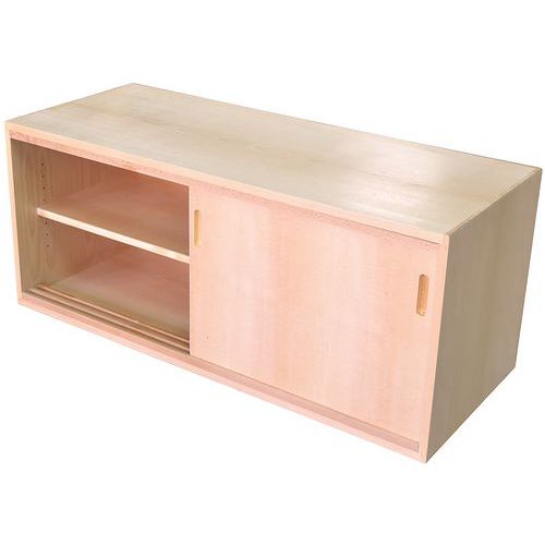 Très robuste. A fixer entre les piètements d'un établi ou à poser sous un plan de travail. Caisson hêtre latté finition entièrement verni. Ouverture par 2 portes coulissantes. Vaste espace de rangement avec 1 tablette intérieure amovible, ép. 19 mm. Fabrication française.