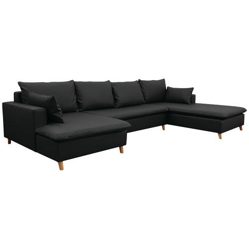 Canapé Milaré avec 2 méridiennes pour plus de confort. Assemblage par collage et agrafage. Structure en panneau de particules 16 mm et bois massif. Assise avec ressorts ondulés à arc. Au choix, enduit PVC non classé au feu, enduit PVC classé non feu EN 1021-1 et 2 allumette et cigarette ou tissus polyester aspect chiné non classé au feu. Structure : Garnissage par mousse polyéther 21 kg/m3 Assise : Mousse polyuréthanne 28 kg/m3 + ouate polyester 200 g/m² Dos : - Toile polypropylène. Mousse polyuréthanne 21 kg/m3 + ouate polyester 200 g/m² Coussins assise et dossier amovibles Pieds en métal chromé. Hauteur : 13 cm Chaque module possède 4 pieds Assemblage par système de crochets en forme de W. Garantie client : 3 ans