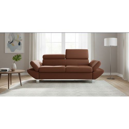 Canapé Vérona avec têtières et accoudoirs réglables pour plus de confort. Assemblage par collage et agrafage. Structure en panneau de particules 16 mm et bois massif. Assise avec ressorts ondulés à arc. Au choix, enduit PVC non classé feu, enduit PVC classé non feu EN 1021-1 et 2 (cigarette et allumette) ou tissu polyester aspect chiné non classé au feu. Structure : Garnissage par mousse polyéther 21 kg/m3. Assise : Mousse polyuréthanne 25 kg/m3 + ouate polyester 150 g/m². Dos : Toile polypropylène. Mousse polyuréthanne 18 kg/m3 + ouate polyester 150 g/m². Coussins fixes pour assise et dos. Pieds métal chromé : hauteur 8 cm. Fabriqué en UE Garantie client : 3 ans