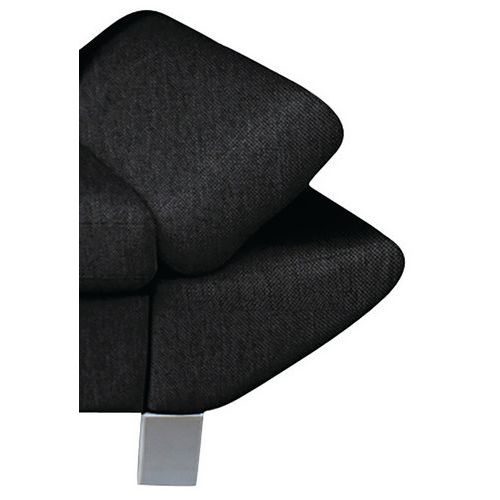 Canapé Vérona avec têtières et accoudoirs réglables pour plus de confort. Assemblage par collage et agrafage. Structure en panneau de particules 16 mm et bois massif. Assise avec ressorts ondulés à arc. Au choix, enduit PVC non classé feu, enduit PVC classé non feu EN 1021-1 et 2 (cigarette et allumette) ou tissu polyester aspect chiné non classé au feu. Structure : Garnissage par mousse polyéther 21 kg/m3. Assise : Mousse polyuréthanne 25 kg/m3 + ouate polyester 150 g/m². Dos : Toile polypropylène. Mousse polyuréthanne 18 kg/m3 + ouate polyester 150 g/m². Coussins fixes pour assise et dos. Pieds métal chromé : hauteur 8 cm. Garantie client : 3 ans
