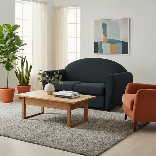 Canapé 3 places West avec revêtement tissu pour un accueil chaleureux. Structure en panneau de particules épaisseur 16mm. Suspensions assise : ressorts ondulés à arc. Dossier : toile polypropylène. Revêtement tissu 100% polyester. Structure assemblage par collage et agrafage, garnissage par mousse polyéther 21 kgs/m3. Coussins mousse polyuréthanne + ouate polyester 200 g/m². Pieds en bois teinté et vernis, hauteur 6 cm.
