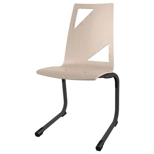 Pieds avant équipés de 2 embouts en polypropylène noir rivetés sur le tube et pieds arrière équipés de 2 embouts anti-bascule en polyéthylène noir rivetés sur le tube, non tachants et non marquants.