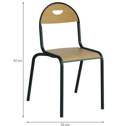 Chaise Malibu en hêtre multiplis vernie, rivetée sur la structure. Epaisseur de l'assise 8 mm. Epaisseur du dossier 6 mm. Poignée de préhension. Piètement acier Ø25 mm, épaisseur 1,5mm. Traverse avant support assise, tôle acier Ø1mm. Soudure avec apport de matière. Embouts en polyéthylène noir non tachant, non marquant. Poudre époxy. Empilable. Fabriqué en Nouvelle Aquitaine. Livré monté. Autres coloris disponibles sur demande.