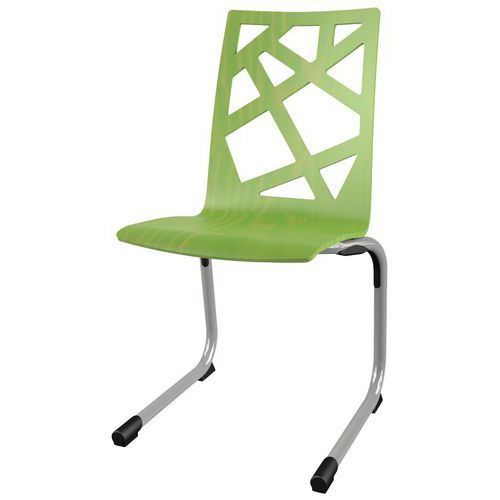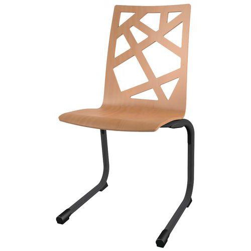 Pieds avant équipés de 2 embouts en polypropylène noir rivetés sur le tube, pieds arrière équipés de 2 embouts anti-bascule en polyéthylène noir rivetés sur le tube, non marquants et non tachants.