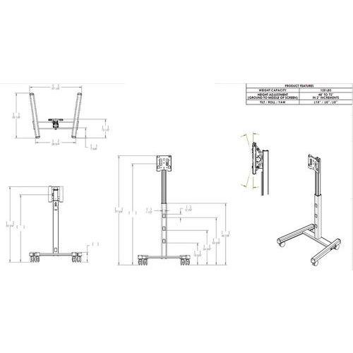 | Intitulé du produit | Chariot léger MFCUB pour écran de 32 à 65, Hauteur réglable: oui, Nb de tablettes: 0 |