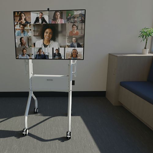 Les supports de caméra et de haut-parleur s'intègrent à une large gamme de technologies de conférence et de collaboration de Vaddio , Logitech, Poly, Google et autres pour prendre en charge les plateformes de réunion telles que Zoom, Microsoft Teams, Google Meet et plus encore. L'encombrement réduit du Voyager invite les utilisateurs à accéder facilement aux écrans interactifs et à se déplacer librement dans le chariot. Assurez la pérennité de votre salle de conférence avec un chariot mobile adaptable compatible avec une large gamme de téléviseurs à écran plat.