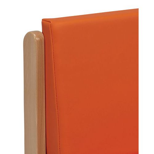 Chauffeuse 1 place Autize revêtement enduit PVC lavable à l'éponge humide. Coussin assise et dossier en mousse polyéther épaisseur 10 cm. Enduit PVC classé non feu M1. Fabriqué en France. Structure hêtre massif. Assemblée par tenons et mortaises. Section pieds : 70 x 26 mm. Livrée montée.