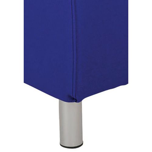Revêtement tissu classé au feu M1. Tissu lavable à l'éponge humide. Mousse polyéther sur assise et dossier densité 25 kg/m3. Pieds hauteur 10 cm en métal revêtu époxy coloris gris. Patins glisseurs isolant du sol. Livré monté.