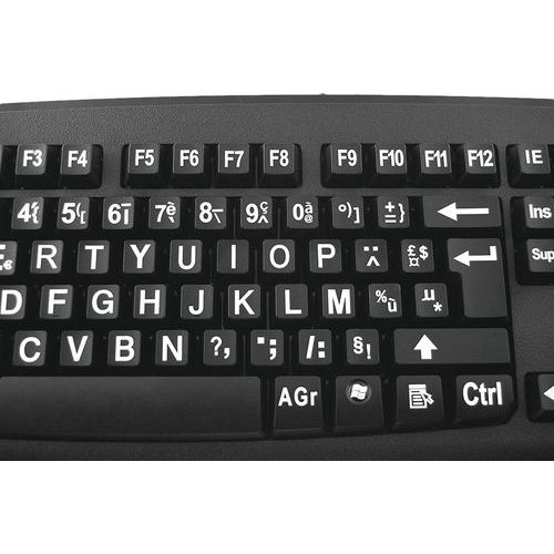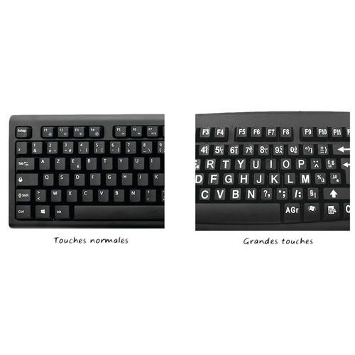 Les touches de ce clavier sont bien plus visibles et contrastées : les caractères sont 3 x plus grands que les caractères habituels des claviers classiques, ce qui augment considérablement le confort visuel.