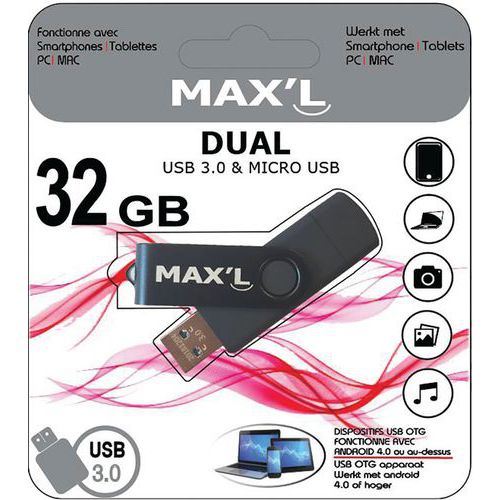 Clé USB Duals USB + micro USB 3.0 OTG - Max'L